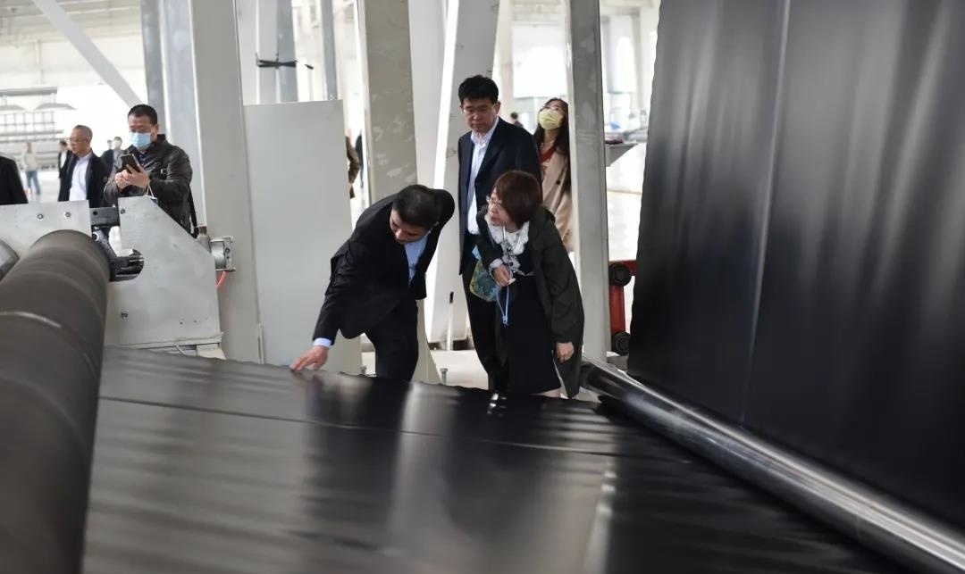 本次研討會與會專家實地查看了晶創(chuàng)公司的生產設備、工藝流程、產品及檢驗室后,大家一致認為晶創(chuàng)產品“強度”、“縱橫強力比”、“服役壽命”等主要技術指標得到突破,全球首創(chuàng)6.5米寬幅產品替代進口,達到國際先進水平。