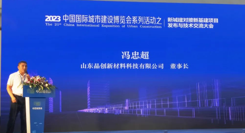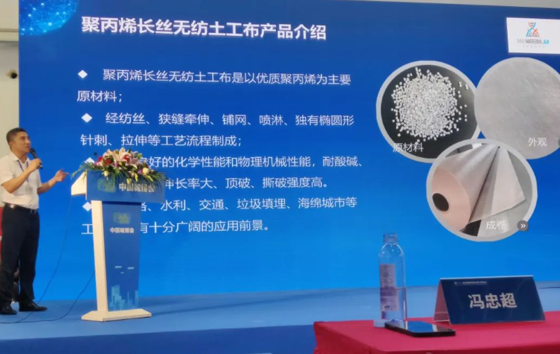 下午13點20分—14點20分,全聯(lián)城市基礎(chǔ)設(shè)施商會副會長單位山東晶創(chuàng)新材料科技有限公司董事長馮忠超做了《高端聚丙烯土工合成新材料助力城市建設(shè)高質(zhì)量發(fā)展》的主題報告。